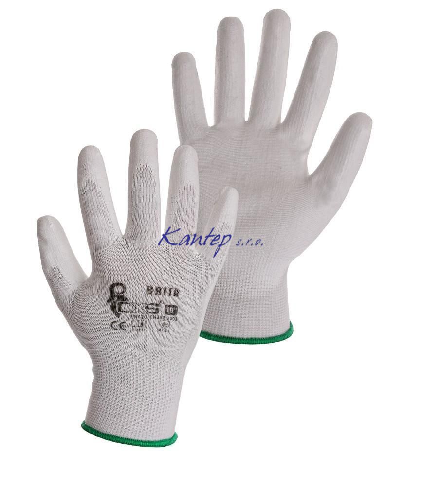 Rukavice BRITA, máčené v PU, bílé vel. 7