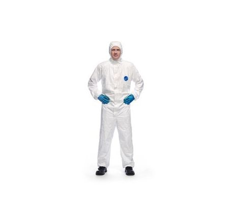 Jednorázový ochranný oblek s kapucí, antistatický, bez silikonů, kat. III, typ 5B,6B. Ochrana proti vodě, roztokům chemikálií, azbestu a prachu. 100% polypropylén TYVEK, netkaná textílie.